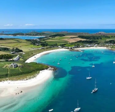 Yes - this is in the UK! Twenty-eight miles off the tip of Cornwall, and on a clear day in July it's genuinely hard to argue you're not somewhere else entirely. White sand, water that goes turquoise in the shallows, boats bobbing in the harbour. The islands are small enough that you get around by bike or on foot, and quiet enough that the pace drops within about an hour of arriving. The ferry crossing is part of the experience — two and a half hours from Penzance, watching the mainland disappear. TOP TIP - Book now for next year! This place is still a true hidden gem with accommodation limited.